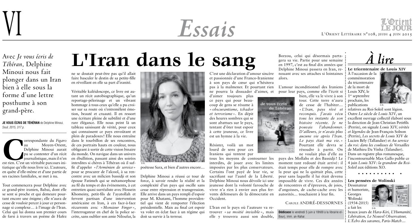 Publié dans "L'Orient Littéraire" du 4 juin 2015, supplément mensuel de "L'Orient, le Jour"